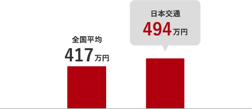 日本交通のタクシードライバーの平均収入は494万円です。タクシードライバーの平均年収は約417万円※と言われているので、平均よりも高い収入を確保できていると言えます。その理由は、日本交通が築き上げた長年の信頼と、企業規模を生かした大規模輸送、豊富な法人契約、独自の無線システムや配車アプリなどにより、未経験でも高い収入を得やすい環境を実現しているからです。